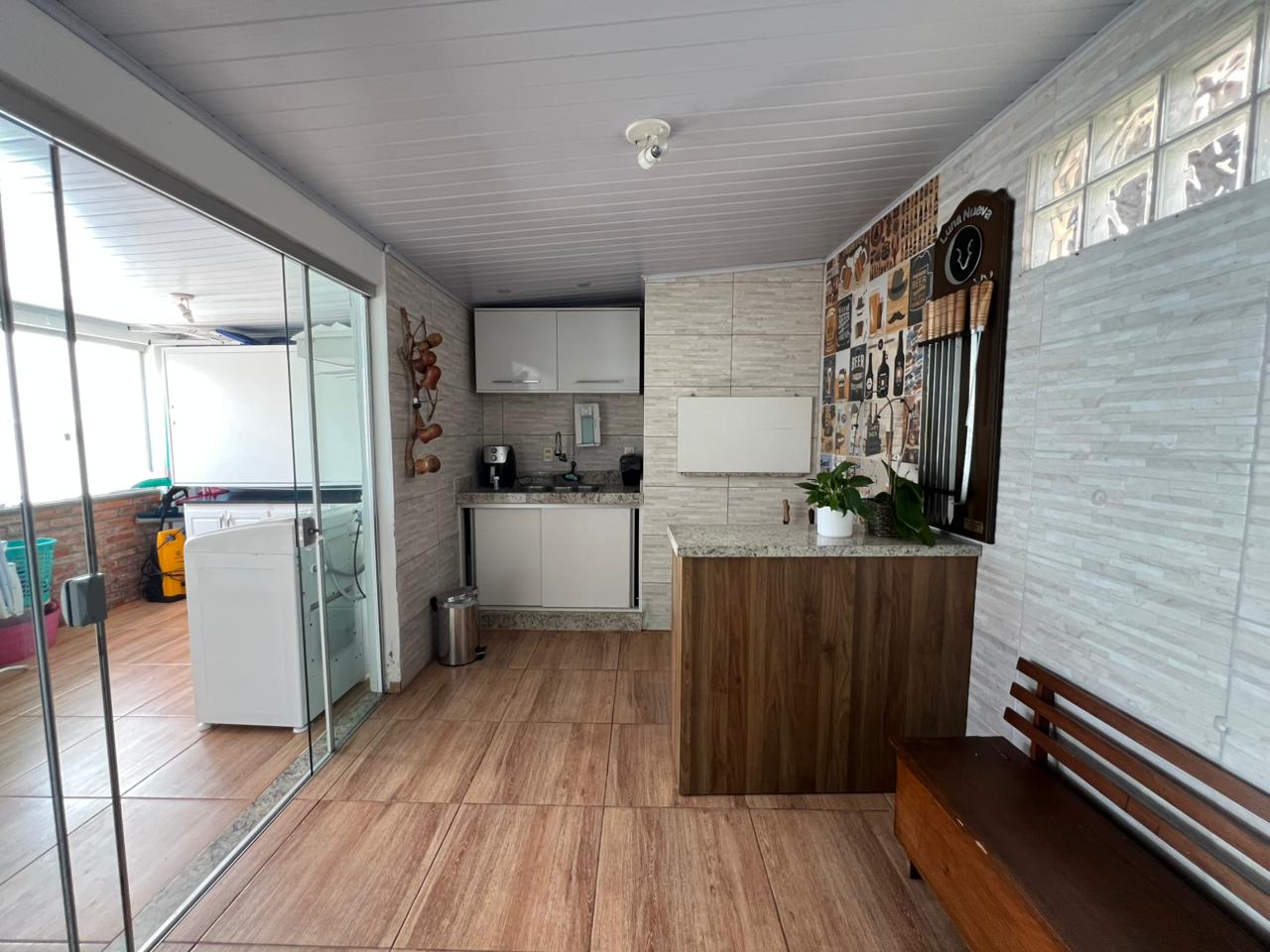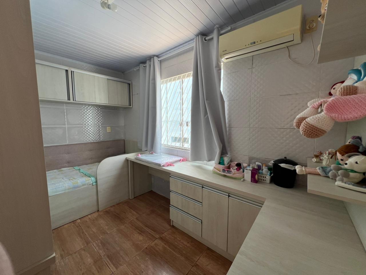 Nos fundos, uma agradável área gourmet com churrasqueira, perfeita para momentos de lazer e confraternizações. O imóvel ainda conta com uma sala de estar, lavanderia, banheiro social, pátio totalmente calçado e garagem fechada para dois carros.