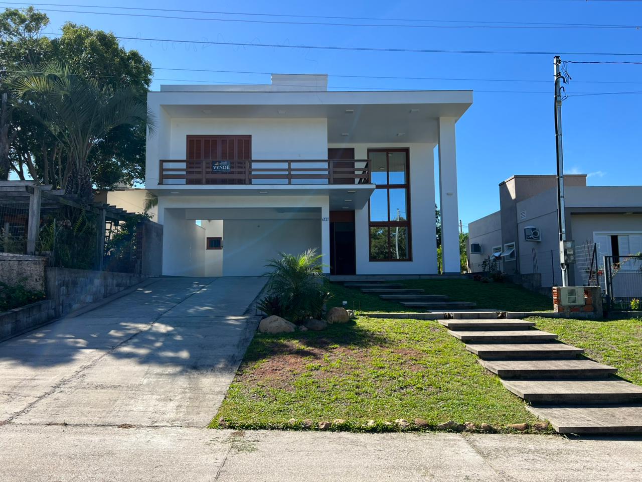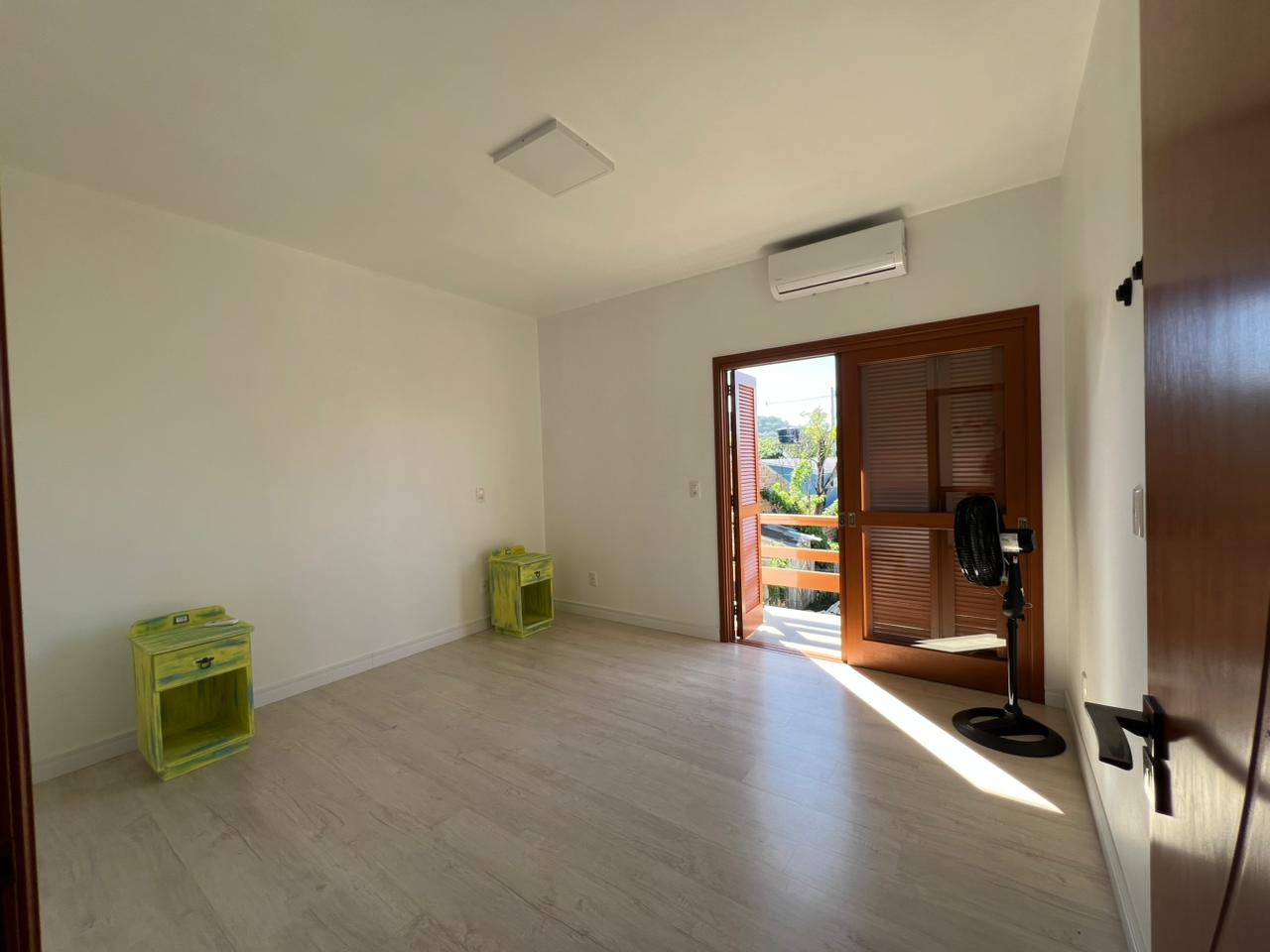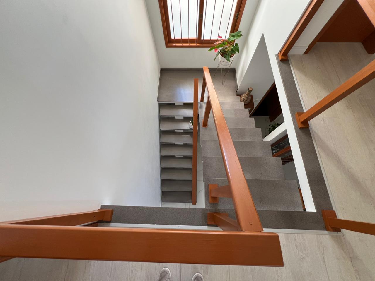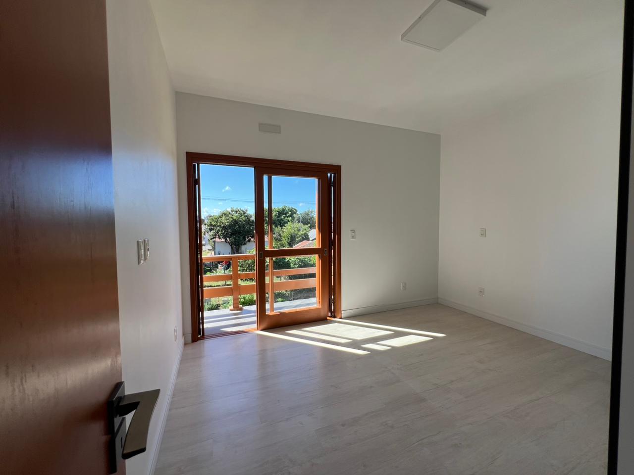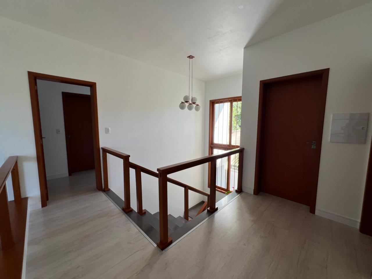 • Área Íntima (Piso Superior): Subindo a escada com design flutuante, encontramos 03 dormitórios, sendo um deles uma suíte master. O grande diferencial? Todos os dormitórios possuem sacada, permitindo acordar todos os dias com uma vista relaxante para o verde e o horizonte de Jaguari.