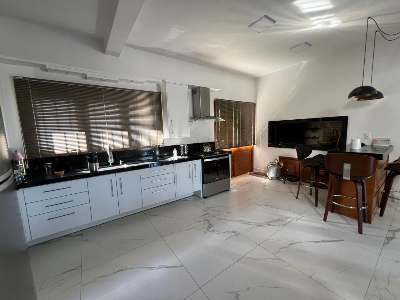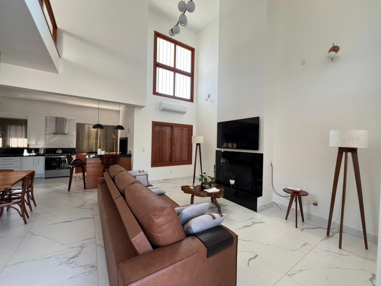 • Área Social Integrada: A sala de estar conta com uma elegante lareira, perfeita para os dias frios da nossa região. O ambiente conecta-se harmoniosamente à sala de jantar e à cozinha, ideal para quem gosta de receber amigos e família sem perder a interação.