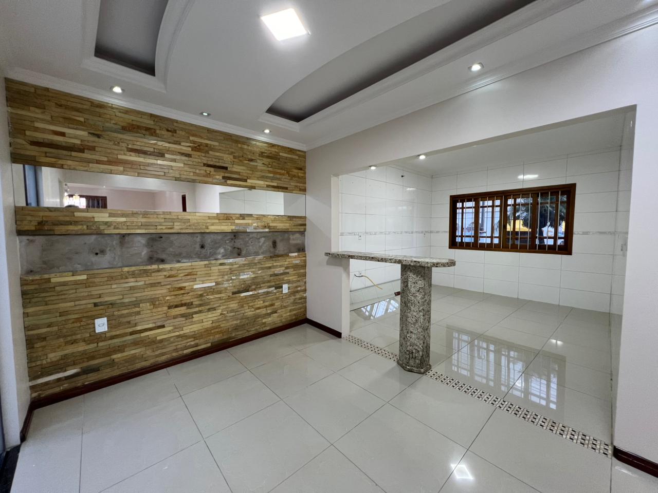 - Ambientes Integrados e Modernos: O projeto interno destaca-se pelo acabamento refinado, com rebaixamento em gesso e projeto luminotécnico em LED. A sala de jantar integra-se harmonicamente à cozinha, que conta com bancada em granito, criando um ambiente perfeito para convivência.
