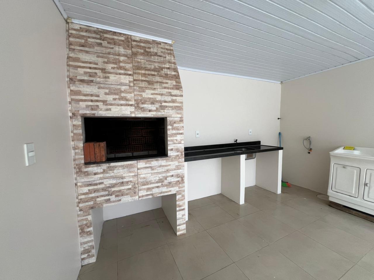 - Funcionalidade: Banheiro social com acabamento moderno, poço de luz que garante ventilação natural e iluminação interna, e uma garagem coberta que também serve como espaço gourmet, equipada com churrasqueira e bancada de apoio.